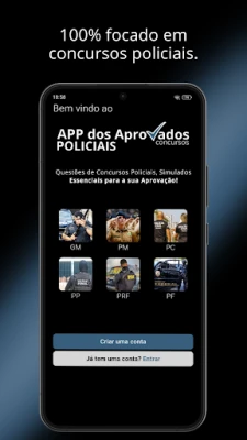 O Simulador de Exames Policiais é seu parceiro indispensável na busca pela farda, projetado para maximizar seu potencial e otimizar seu tempo. Ele oferece o acompanhamento e a estrutura necessários para construir uma base sólida e alcançar seus objetivos com confiança. Tenha em mente que O APP dos Aprovados Policiais não possui vínculo ou representa qualquer entidade governamental, atuando exclusivamente como um recurso educacional de apoio ao candidato. Consulte sempre fontes oficiais em www.gov.br para informações institucionais.