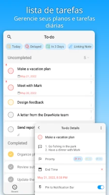 Mantenha a sua produtividade em alta com o sistema de gestão de tarefas integrado no DrawNote. Crie listas de afazeres, defina prioridades e prazos, e fixe lembretes importantes diretamente na sua barra de notificações, garantindo que nenhum compromisso seja esquecido. A sua paz de espírito é uma prioridade para DrawNote, que oferece backup seguro na nuvem através do Google Drive, com opção de cópia automática para proteção dos seus dados. Proteja informações sensíveis com senhas para notas e pastas específicas, garantindo privacidade total. Além disso, desfrute de uma interface de utilizador intuitiva, modo escuro personalizável e a promessa de uma experiência completamente livre de anúncios. DrawNote é a ferramenta essencial que combina funcionalidade robusta com uma usabilidade elegante.