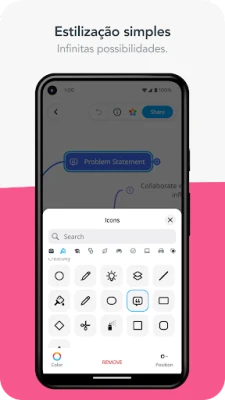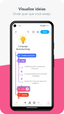 Explore um universo de liberdade criativa, onde suas ideias ganham forma sem limites. Com funcionalidades intuitivas como arrastar e soltar, zoom e panorâmica, você pode personalizar cada mapa com ícones vibrantes, cores, estilos e temas que refletem sua visão única. Anexe notas detalhadas, links úteis, tarefas e arquivos relevantes, enriquecendo cada conceito com contexto e profundidade. Além disso, MindMeister redefine a colaboração: compartilhe mapas diretamente do seu dispositivo e trabalhe em tempo real com sua equipe, garantindo que todos estejam alinhados e contribuam para o projeto de forma eficiente e harmoniosa.