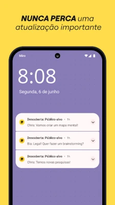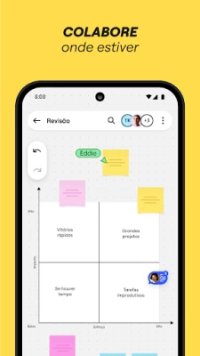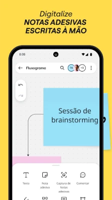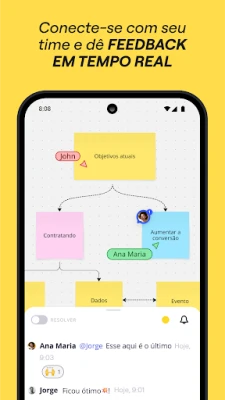 No seu dispositivo móvel, Miro estende o escritório para onde você for. Digitalize notas físicas e transforme-as em conteúdo digital editável, crie, visualize e edite todos os seus boards, capture e organize insights onde estiver. Compartilhe facilmente seus boards publicamente ou convide membros específicos do time para colaborar, envie imagens, fotos, documentos e planilhas, e revise, adicione ou resolva comentários em tempo real. Para usuários de tablets, a experiência é ainda mais rica, permitindo desenhar conceitos e esboçar ideias de design com uma caneta stylus, converter desenhos feitos com caneta em formas, notas e diagramas precisos, e até configurar o tablet como segunda tela para plataformas como Zoom ou Microsoft Teams. Crie mapas mentais complexos para visualizar ideias e utilize ferramentas como o Laço para reorganizar elementos ou a caneta marca-texto para destacar informações cruciais durante reuniões.