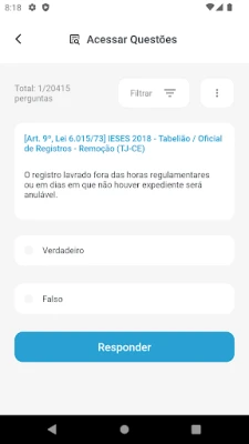 Após uma simples autenticação, Decorando a Lei Seca permite que você selecione o diploma legal de seu interesse e se aprofunde em questões que espelham com exatidão os artigos mais cobrados em exames passados. Imagine potencializar sua memorização, focando precisamente no que é realmente exigido nas provas! Ao navegar pela plataforma, um toque em "Acessar Questões" revela filtros intuitivos para você especificar o Código ou Lei desejado, juntamente com tópicos e subtópicos. Cada resposta é uma aula: acertos são acompanhados de comentários que destacam o artigo correto com grifos verdes, enquanto erros revelam o dispositivo cobrado com marcações vermelhas, alertando para as "armadilhas" mais frequentes nas bancas examinadoras.